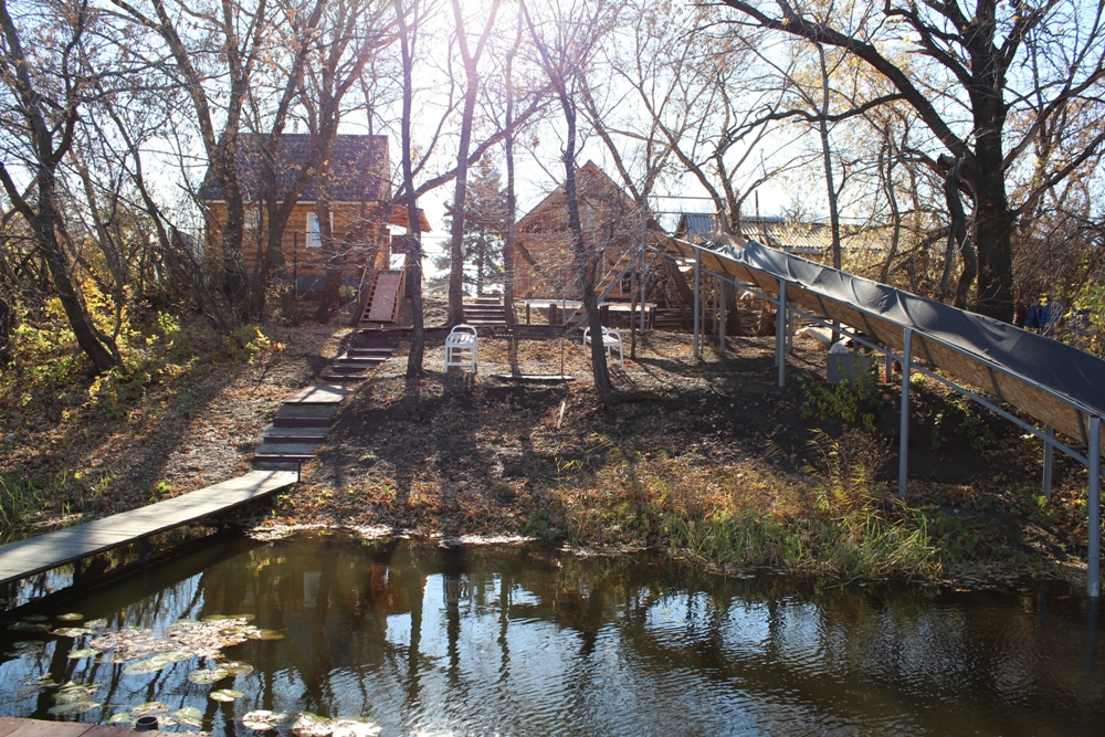 - Баня на дубовых дровах с выходом к озеру Микутка. В зимнее время оборудуется прорубь для истинных ценителей.